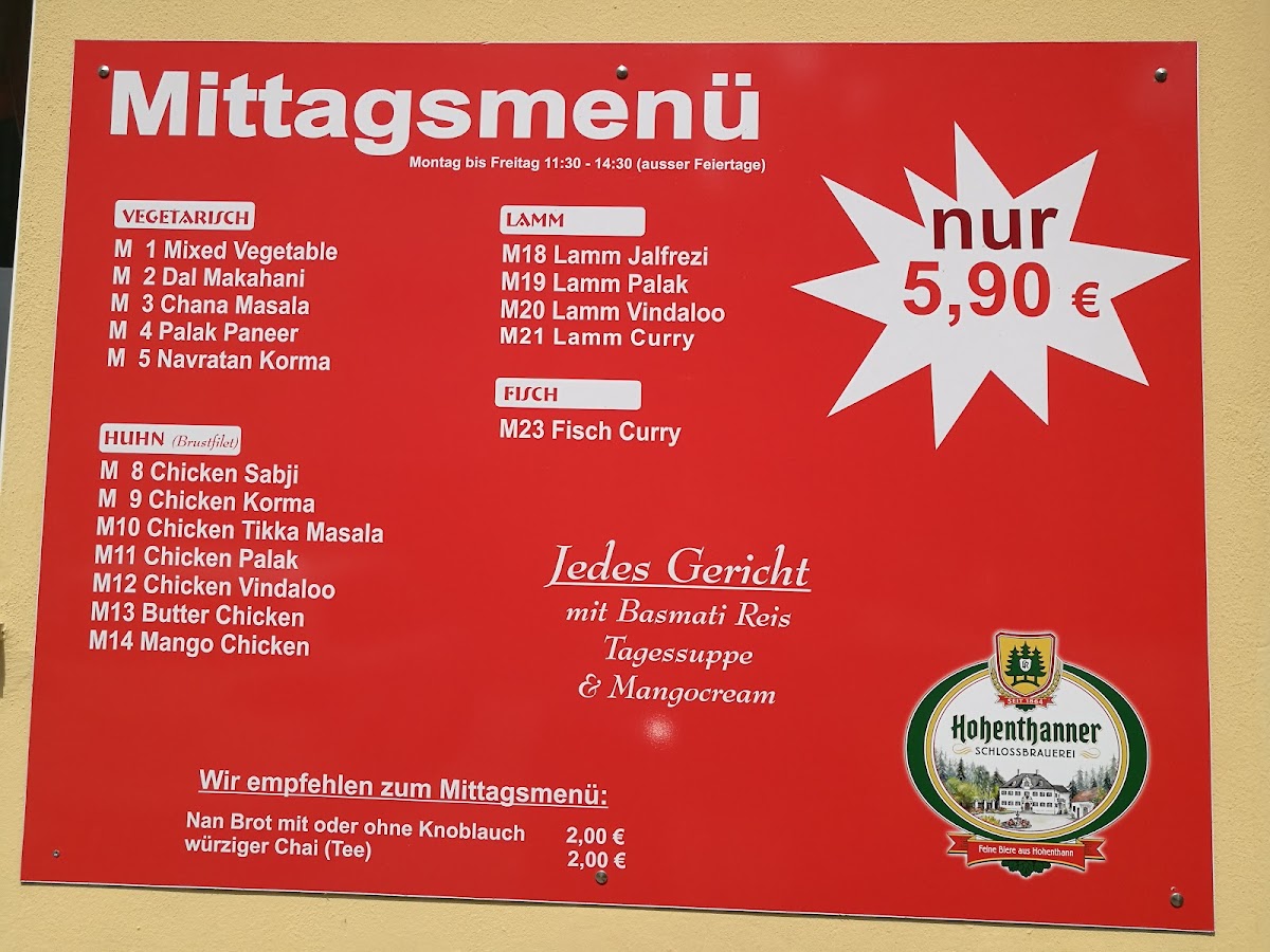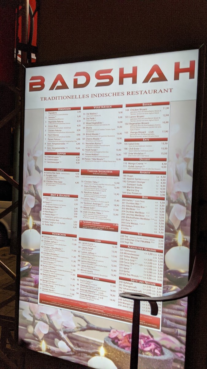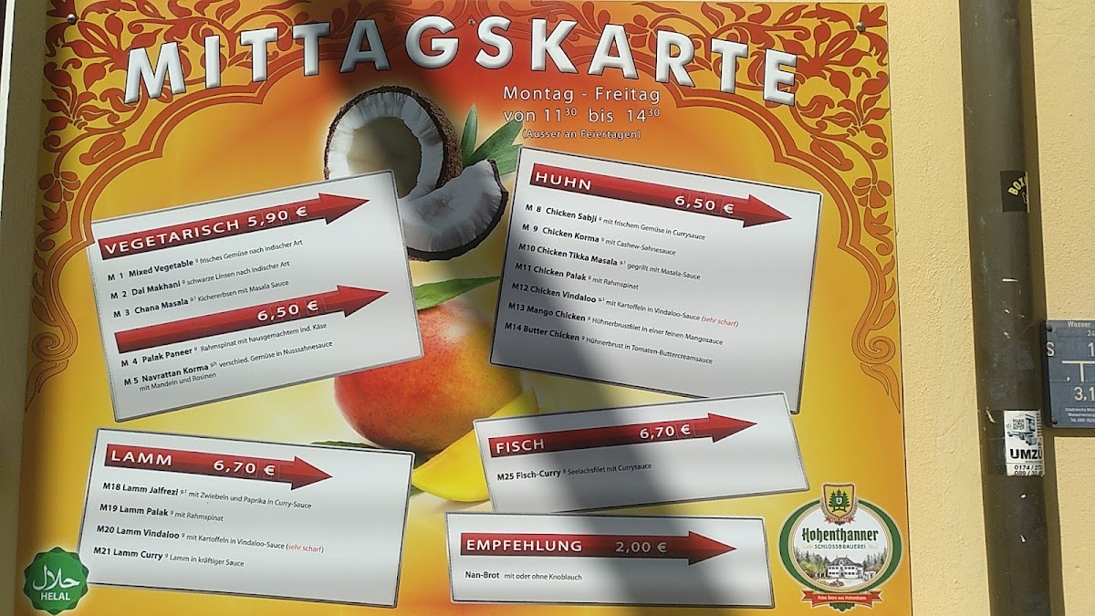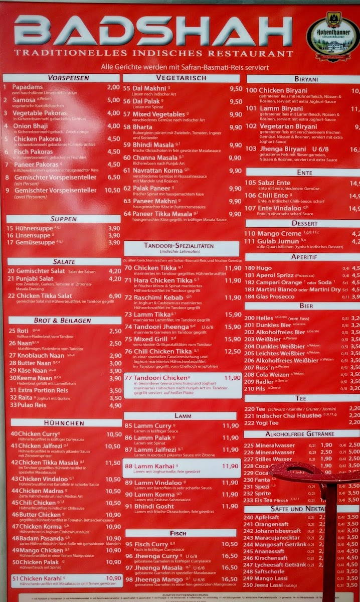 For those seeking lighter options, the Salat provides a refreshing balance, and the Badshah Suppe is a warming, flavorful soup that makes a perfect start to any meal. Don’t forget to sip on the traditional Indisches Tee to round off the experience, enhancing the meal with its aromatic and soothing properties.