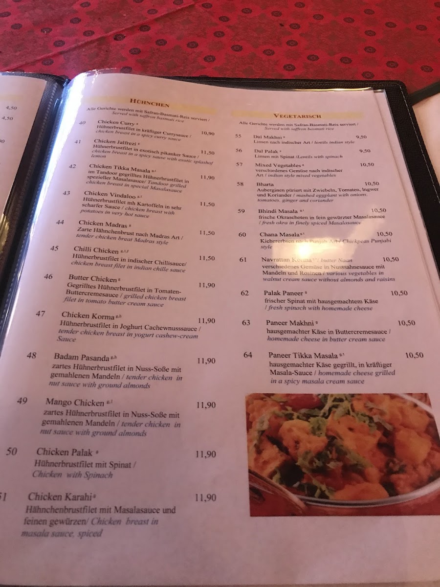 A variety of breads like Knoblauch Naan and Naan Brot Kheema with Meat complement the main courses, adding extra layers of flavor. The Mango Chicken Reis is another standout, with its tropical mango notes bringing sweetness to the chicken and rice combination.